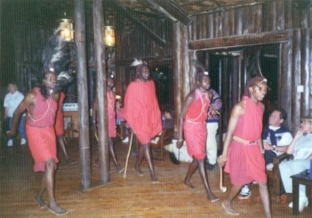 夜はロッジで写真12のようなマサイ族のショーもありました。マサイ族は確か「誇り高き人」という意味で、あえて文明の恩恵を受けないというのが建前だったのですが、当時でも既にかなり商業化はされていました。