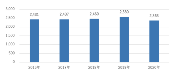 一方、国内のアート市場はどうだろうか。一般社団法人アート東京の「日本のアート産業に関する市場調査2020」によると、2020年の日本の「美術品市場」は対前年比で約8.4ポイント減の2,363億円と発表された。