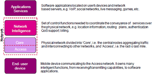 (注1)ちなみに、EU勧告からモバイル・アクセス市場が外された今では、ISP、コンテンツプロバイダへのオープン化 などの規制措置を取ろうとすると、加盟国は独自に市場画定をおこない、EUの承認を得る必要が出てくる。 (注2)オフコムによる配分プロセスが滞っている旧2G帯域の再編について、政府が新たに方針を決定する見通し。 オフコムによるモバイルインターネットへのレイヤーアプローチオフコムはモバイル市場への規制アプローチを検討するにあたり、モバイルインターネットのビジネスモデルを考察しているが(図参照)、オフコムが注目しているのは、新しいプレーヤーの参入によりモバイルビジネスが活性化することと並行して、MNOの相対的な地位が後退していくというトレンドのようである。 オフコムの理解では、NGNの導入とともに、(1)モバイル・アプリケーション(日本では「コンテンツレイヤー」)はネットワークからの独立性を高め、(2)インテリジェンス層(日本では「プラットフォームレイヤー」)の役割は今後低下する方向にある、と見る。例えば、モバイル・アプリケーションストアに見るとおり、コンテンツ/アプリケーション・プロバイダーはサービスを提供するために、MNOと契約を結んだり、そのネットワークにカスタマイズしてアプリケーションを作り込む必要がなくなりつつある。しかも、今後はアプリケーションのインテリジェンスが発達してしまい、インテリジェンス層(「プラットフォーム」)をバイパスしてサービスを提供することが可能になるかもしれない(例えばMNOからの位置情報提供がなくとも、アプリケーションが自ら取得できるようになっているなど)。これらのプロバイダーが、MNOの認証・課金システムからの完全な独立性を獲得できるかどうかは疑問が残るものの、オフコムは規制当局として現時点で何らかの措置を必要と見るまでには至っていない。第3者アクセス(MVNO、アプリケーション・プロバイダー)に関しても、今後の競争状態を注視はするものの、義務付けは行わないとしており、現時点では慎重な姿勢である。例えば、2009年コンサルテーション文書は以下のコメントがある。 「MNOは、端末メーカーとアプリケーション・プロバイダーが顧客と直接関係を結ぶようになるにつれ、不利になっていくだろう。少なくとも今後2〜3年は、厳しい経済状況での経営を余儀なくされる。MNOは、音声とSMSにおいては強いポジションを維持できるだろうが、アプリケーションやサービス面では競争にさらされる可能性がある。(p19)」 日本では、認証・課金システムの機能がMNOによって押さえられ、その潜在的な支配力が懸念された経緯がある。このため、各MNOの認証課金機能を連携させてMNOの顧客独占性を弱めたり、消費者のスイッチングを妨げないようサービス契約の可搬性を高めるための業界制度が検討されている(注3)。英国が、ビジネスモデルのどの部分に潜在的な支配力を見出すかは、現時点では全く未知数であるが、オフコム文書からは、MNOのもつ「プラットフォーム」が絶対的な強さを発揮していると認識されているとは思えない。むしろ、アップルやグーグルなど、端末やアプリケーション分野 からの大型プレーヤーの参入が、MNOの「プラットフォーム」の形成に影響を与える可能性が注目されている。モバイルインターネットは日英では異なった環境の下で発生しており、引き続く進化の過程で異なったビジネスモデルに発展すれば、規制アプローチも異なっていくだろう。 (注3)「通信プラットフォーム研究会報告書」総務省 2008年 【図】オフコムによるモバイル・ネットワークのレイヤーモデル 出典:“Mostly Mobile; Ofcom’s mobile sector assessment - Second consultation”, Ofcom 8 July 2009 米国 〜 モバイル市場競争調査の改訂とネット中立性の拡充を提案米国は、2007年にFCCがグーグルの意見を取り入れて700MHzオークション(Cブロック)で「オープンアクセス条件」を課した事実からもわかるように、インターネット・プレーヤー擁護のスタンスを取ってきた。米国が新サービスやイノベーションに対して、寛大な立場を取ることは一種の伝統でもあるが、特にインターネットについては、2005年のパウェル委員長時代に打ち出された「オープン・インターネット・ポリシー(注4)」という4つの原則としてFCCの政策に貫かれている。 (注4)(1)消費者が望むコンテンツへのアクセス、(2)消費者が望むアプリケーション/サービスへのアクセス、?消費者が望むデバイス(端末)によるネットワーク接続、?ネットワーク、アプリケーションおよびサービスプロバイダー、コンテンツ・プロバイダー間の競争環境を消費者が享受すること、を妨げない(スイッチング障壁の低下)とするルール(本誌2009年10月号「米国におけるネット中立性規制強化の動き」も参照)。 2009年8月27日、新政権下のFCCは、従来から行っていた移動通信市場の競争に関する年次調査の内容を一新するための意見聴取を開始した。見直し内容