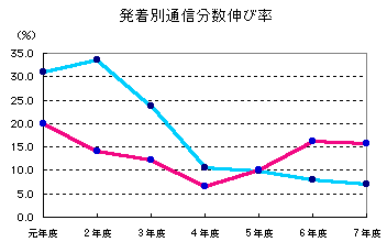 | 発信分数の伸び率 | 31.0 | 33.6 | 23.8 | 10.6 | 9.9 | 8.0 | 7.0 |