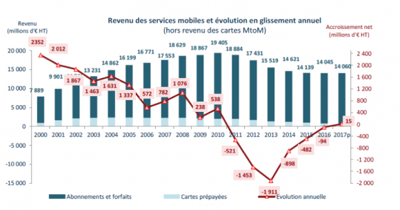 【図5】フランスのモバイルサービス収益のトレンド 2000-2017